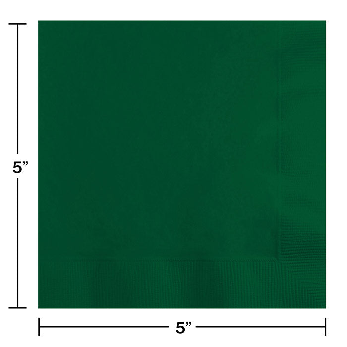 Hunter Green 2 Ply Beverage Napkins are the perfect addition to any occasion. The set of 600 napkins are made of 2-ply tissue and measure 9.875" x 9.875" when folded. The hunter green color is perfect for many holiday occasions as well as reunions, graduations, birthdays and more. With 50 napkins per package and 12 packages per case, you'll have plenty of napkins for your party or catered event. Place the napkins next to bowls of treats and candies, at the dessert table or drink bar, or let your guests grab a handful of snacks using the napkins. The Hunter Green Beverage Napkins are a great addition to any Solid Color Party Tableware and Accessories collection.