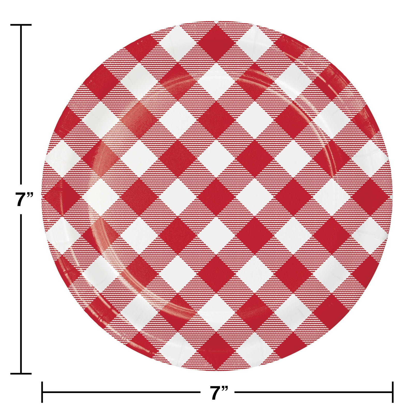 Add a classic touch to your summer parties and barbecues with our Classic Gingham Dessert Plates. These disposable paper plates feature a classic gingham pattern with a red and white theme, perfect for summer. The plates measure 6.75" and are made from sturdy paper boardstock. Coordinate these plates with all Red and White Gingham party supplies for the perfect summer decor. With 8 plates per package, you get a total of 96 plates per case. Plus, these plates are made in the USA for quality you can trust. For more summer party decorations, party favors and party supplies, check out PartyDecorations.com.
