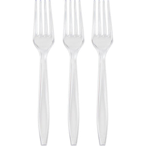 Make any occasion special with our Clear Themed Plastic Tableware. The Clear 24Ct Forks Only package offers 24 forks per package and 12 packages per case, for a total of 288 forks. Perfect for any event, these high-quality clear forks are an easy way to make your table setting look beautiful. Use these forks for birthdays, holidays, dinner parties, and more. With their sleek and modern design, these forks are sure to add a touch of elegance and sophistication to your table setting. Enhance the look of your table with our Clear Themed Plastic Tableware.