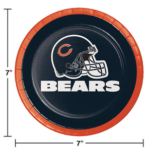 Celebrate the Monsters of the Midway with our officially licensed Chicago Bears Dessert Plates! These plates are perfect for tailgating events, sports bars, and retail shelves. Our wholesale plates are constructed from heavyweight paperboard stock and feature the team's colors and logo with a blue, white, and orange Bears helmet in the center and the team name below in white. The plates measure 6.875" in diameter and offer a sturdy solution to game day serving needs. Each package contains 8 plates and there are 12 packages per case, for a total of 96 plates per case. Show your team spirit and serve desserts, sides, and finger foods with these Chicago Bears Dessert Plates!