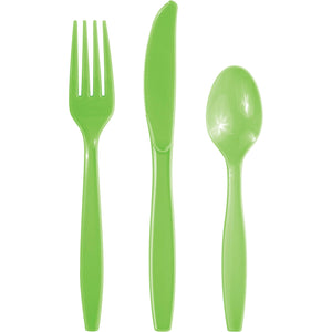 Make any occasion special with our Fresh Green Assorted Cutlery. Each package includes 24 pieces with 8 each of knives, forks, and spoons, with 12 packages per case. This versatile product is perfect for all occasions, from small gatherings to large events. The Fresh Green Assorted Cutlery is part of our Solid Color Party Tableware and Accessories collection. Plus, these cutlery items ship within one business day from our Illinois warehouse. Make your event stand out with our Fresh Green Assorted Cutlery.