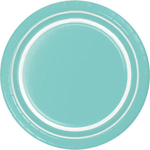 Our Spa Blue Sturdy Style 8.75 Inch Dinner Plate is the perfect addition to any special occasion. This item is part of our Solid Color Party Tableware and Accessories category, and comes in a convenient 10ct package with 12 packages per case, giving you a total of 120 items per case. The plates are made in the USA and ships within one business day from our Illinois warehouse. Each plate measures 8.75 inches and comes in a retail package size of 0.875 x 8.875 x 8.875 inches. The case dimensions are 9.22x7.97x9.44 inches. Make sure to add this item to your next event and impress your guests with the beautiful Spa Blue Sturdy Style 8.75 Inch Dinner Plate.