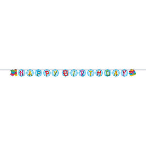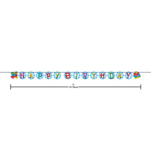 Set a celebratory vibe at any birthday party celebration with this Block Bash Happy Birthday Toy Blocks Ribbon Banner. This hanging banner features a "Happy Birthday" message with each letter in a different bubble. The letters that spell out "Happy Birthday" are made up of building blocks in bright colors like pink, red, green, yellow, and blue. Use this banner to add a pop of color to any space easily. Hang this banner in an entryway, against a wall for photo-taking, or over a party table to draw attention. The party banner measures 6" x 116" and comes on a ribbon for your convenience. Sold in cases of 1, each case has 12 packs. Mix and match other items with our coordinating Block Bash party supplies! Material: Paper, Plastic. Approximate size: 6" x 116".